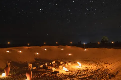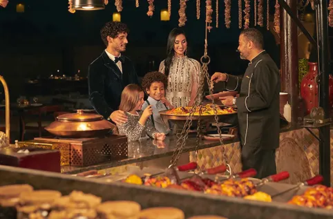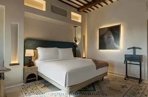 Set within the tranquil Al Marmoom Desert Conservation Reserve, Bab Al Shams feels worlds away yet lies just 45 minutes from the heart of Dubai. Guests can explore the surrounding sandscape by 4x4, camel, or horseback, witness wildlife like the Arabian oryx, or rise above it all in a private hot-air balloon. Beyond the dunes, Dubai’s vibrant cityscape awaits – from world-class shopping to soaring architecture – offering the rare luxury of true contrast: immersive desert calm within easy reach of urban thrills.