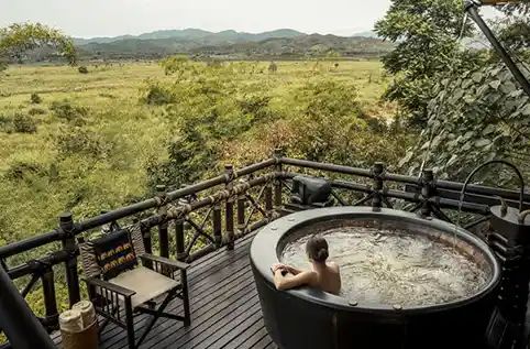 Four Season Tented Camp Golden Triangle is located at the conjunction of Laos, Thailand and Myanmar, giving guests a three-dimensional view of all the countries. The resort itself sits on a hillside of the northernmost edge of Thailand, surrounded by lush jungle and tropical vegetation. Although the captures the spirit of adventure, guests can experience off-site excursions. Take a tour of Chiang Rai, shop ‘til you drop at the Night Market, visit ancient temples or get your culture fix at the local museums.